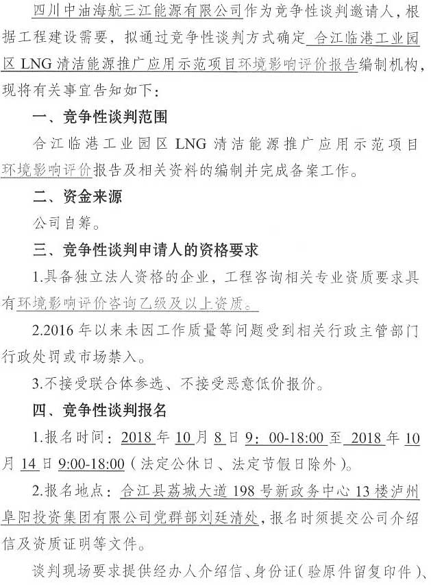 合江臨港工業(yè)園區(qū)LNG清潔能源推廣應(yīng)用示范項目環(huán)境影響評價單位競爭性談判公告.docx