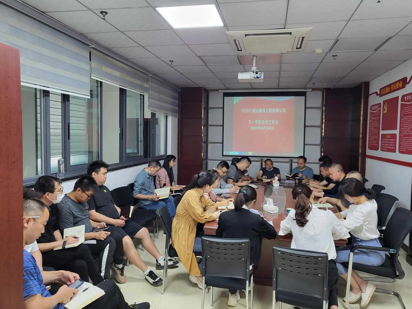 五 一 勞 動 節(jié) 將 至 , 為 了 讓 廣 大 職 工 度 過 一 個 平 安 祥 和 的 節(jié) 日 , 董 事 長 組 織 公 司 本 部 全 體 員 工 、 各 項 目 部 現(xiàn) 場 負 責 人 、 安 全管理人員在公司 14 樓會議室召開五一節(jié)前安全生產(chǎn)工作會。