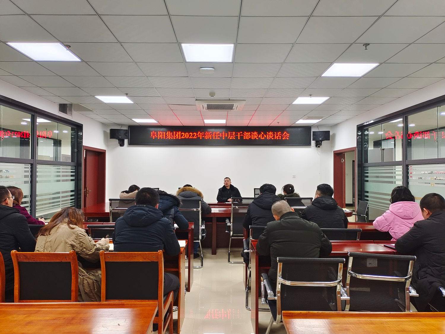 2022 年 2 月 9 日, 阜陽集團(tuán)公司黨委副書記、 紀(jì)委書記 聶仕華對新任中層干部開展任前集中廉潔談話。