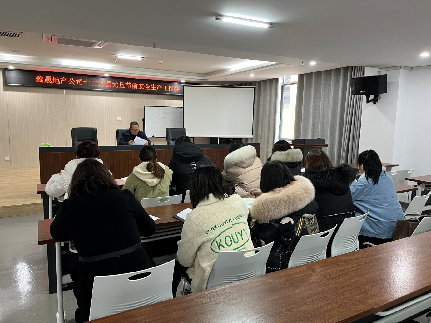 2021年12月27日,瀘州鑫晟房地產(chǎn)開發(fā)有限公司組織召開十二月暨元旦節(jié)前安全生產(chǎn)工作會,會議由董事長任東財主持,公司全體員工參加。
