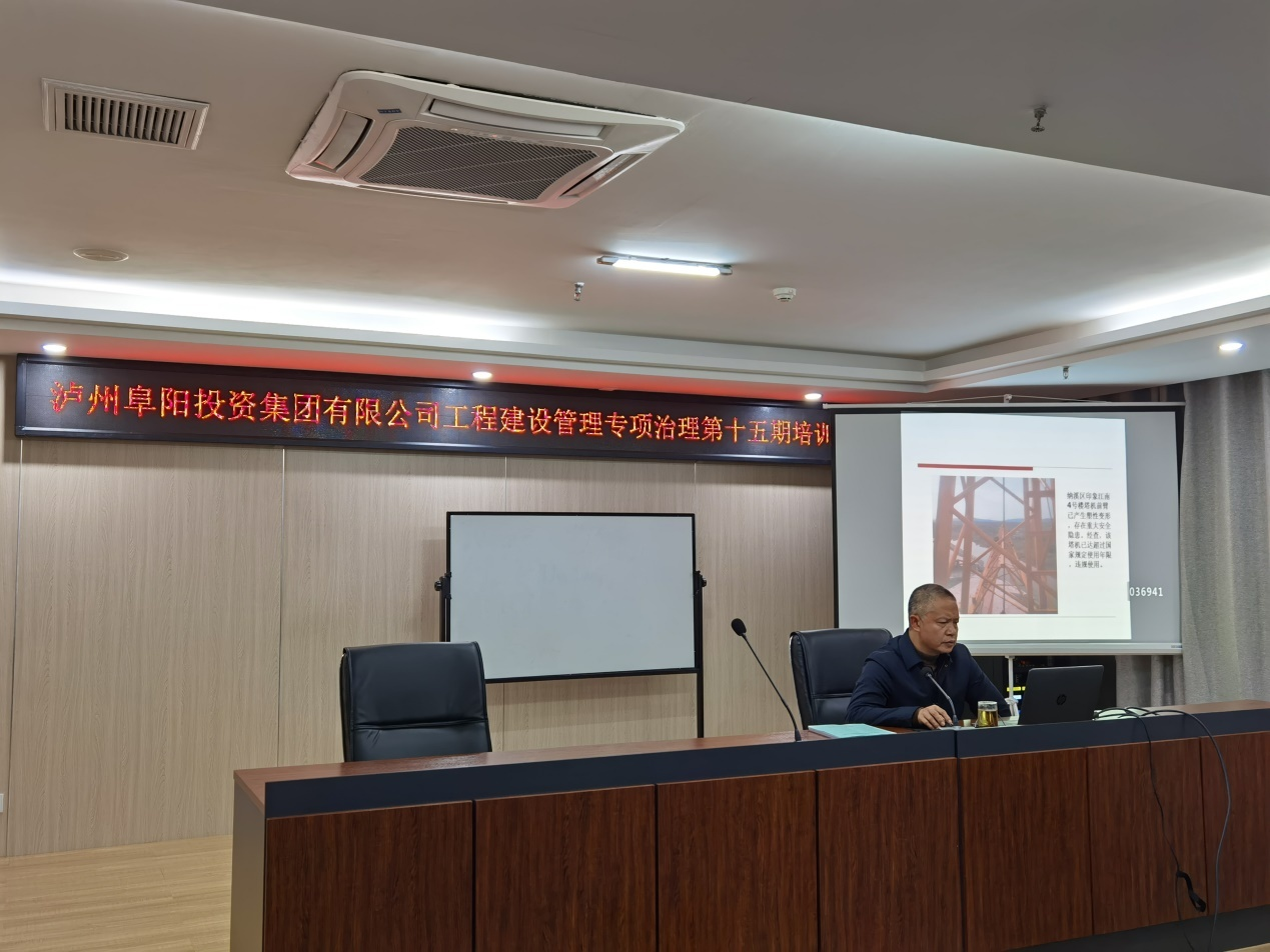 2021 年 10月28日,瀘州阜陽投資集團有限公司開展工程建設(shè)管理專項治理第十五期培訓(xùn),培訓(xùn)會議由廣源達公司董事長張學(xué)彬主講,各級公司工程項目管理人員參加。