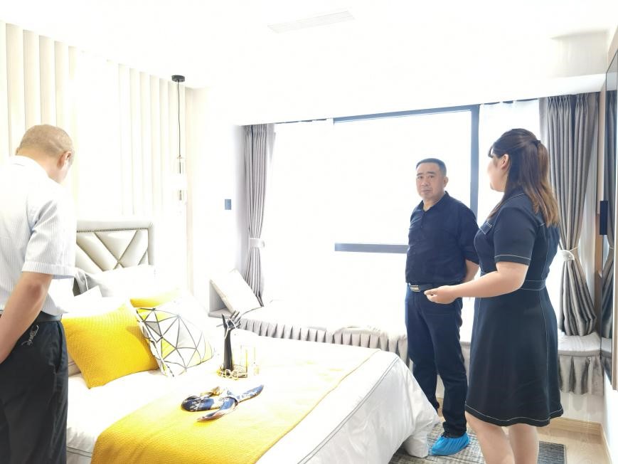 2021年5月11日,財(cái)監(jiān)局局長楊向前率隊(duì)調(diào)研鑫晟學(xué)府項(xiàng)目建設(shè)銷售情況。調(diào)研組一行實(shí)地查看了中庭建設(shè)情況、樣板間裝修情況,并詳細(xì)了解了項(xiàng)目銷售情況。楊局強(qiáng)調(diào):鑫晟學(xué)府項(xiàng)目作為縣國企第一個(gè)房開項(xiàng)目,一定要及時(shí)完成建設(shè)銷售工作,體現(xiàn)經(jīng)濟(jì)效益。