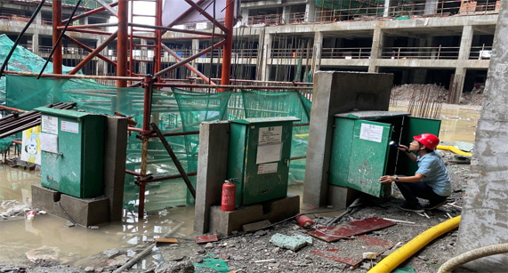 2020年7月16日傍晚,合江縣突發(fā)大暴雨,為防范安全隱患,我司積極組織施工單位和監(jiān)理單位展開(kāi)安全排查,重點(diǎn)排查了塔吊、施工電梯、電箱、基坑、地下室等易積水的高危地點(diǎn),確保安全施工。