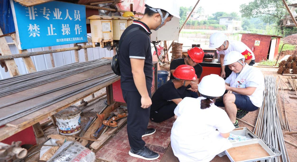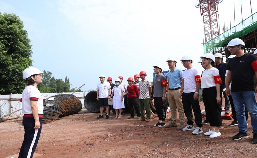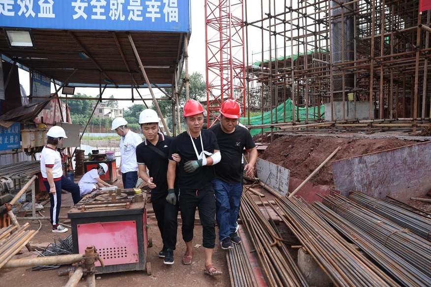 上午9時(shí)30分,演練正式開始。鋼筋棚工人受傷,指揮長吳平收到消息后立即組織現(xiàn)場人員開展救援,疏散圍觀工人,通知醫(yī)護(hù)人員開展救治,救治成功后現(xiàn)場進(jìn)行了應(yīng)急救援知識的講解,順利完成此次應(yīng)急救援演練。