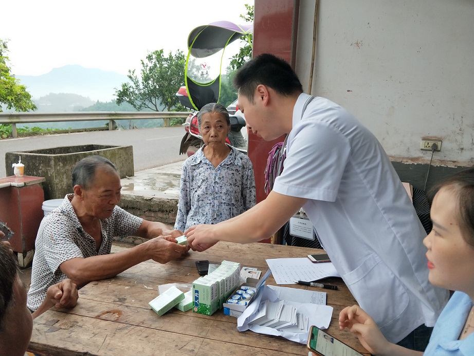 活動中,家庭醫(yī)生團隊成員為當地村民講解家庭醫(yī)生服務項目、醫(yī)改政策,并提供健康教育、用藥指導、咨詢服務等;洪昇公司為村民們發(fā)放價值3000余元的十滴水、清涼油、人丹等清涼解暑藥。