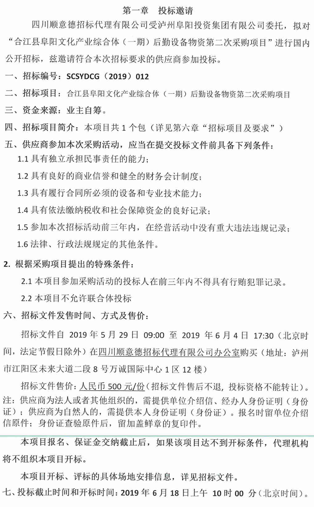合江縣阜陽(yáng)文化產(chǎn)業(yè)綜合體(一期)后勤設(shè)備物資第二次采購(gòu)項(xiàng)目
