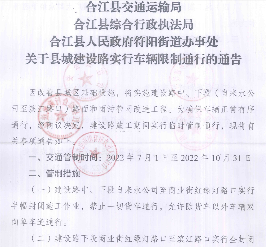 關(guān)于縣城建設(shè)路實行車輛限制通行的通告