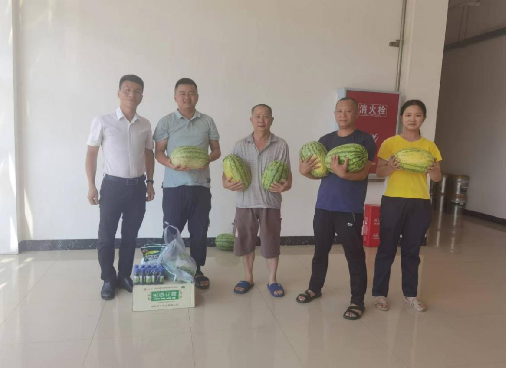 2022 年 8 月 19 日,為切實(shí)做好防暑降溫工作,城投公司副總經(jīng)理陳云峰帶隊(duì)慰問(wèn)酷暑堅(jiān)守在一線的員工, 為奮戰(zhàn) 在一線的工作人員送上了西瓜、 藿香正氣口服液、 金銀花露等防暑物品, 最大限度減少了職工因高溫中暑造成的職業(yè)傷害, 保障了職工的安全與健康, 讓他們?cè)谑⑾牡目崾钪懈惺艿揭环萸鍥雠c關(guān)懷!