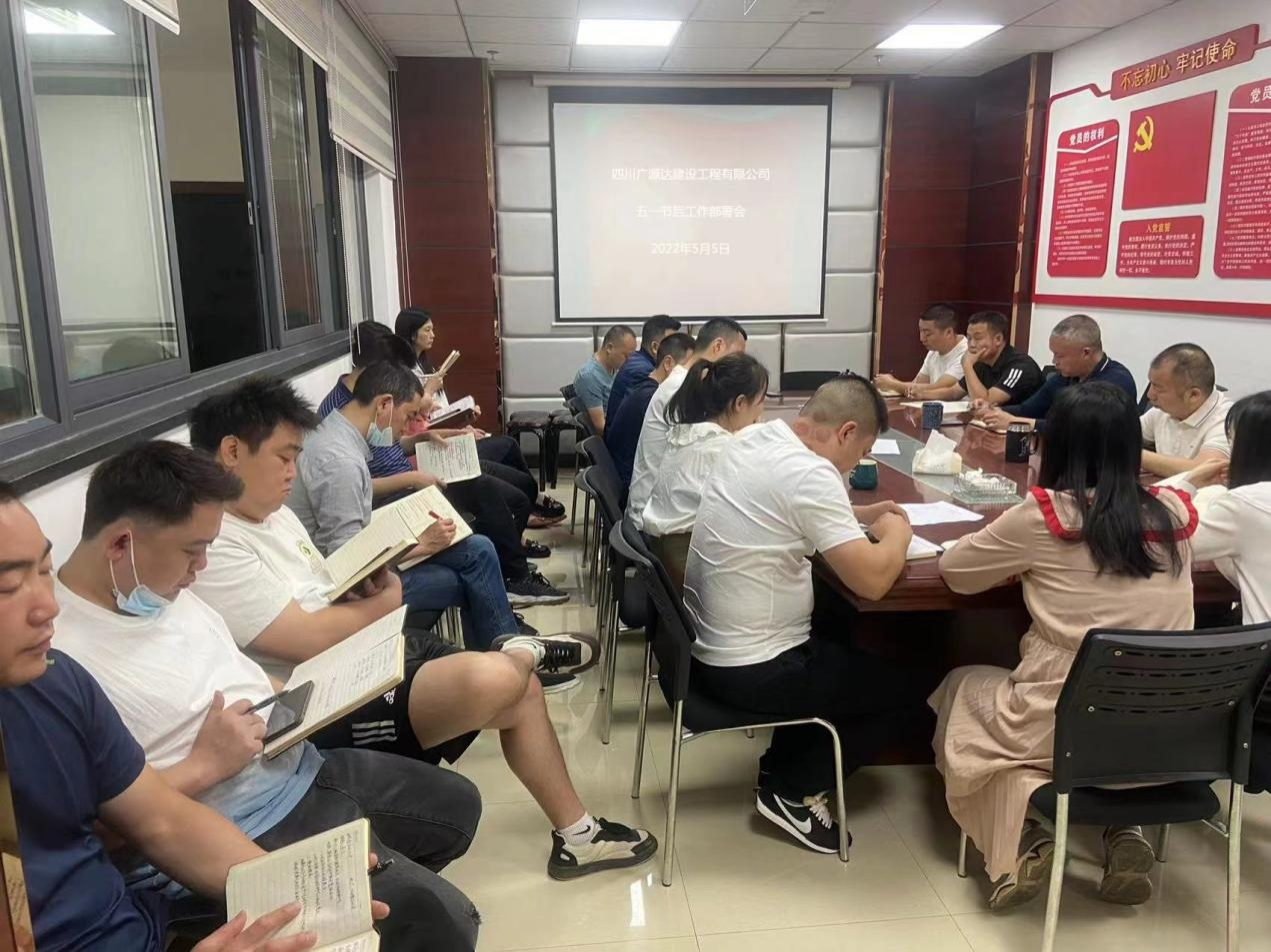 2022 年 5 月 5 日上午,四川廣源達(dá)建設(shè)工程有限公司召開 2022 年“五一”節(jié)后工作部署會。