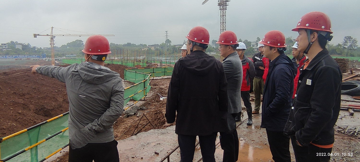 2022 年 4 月 1 日上午, 江北公司陳目科董事長帶隊(duì)視察 江北連接線、 江北文化綜合體項(xiàng)目、 學(xué)府家園等項(xiàng)目建設(shè)情況。